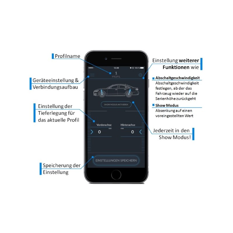 Con l'ultimo modulo Active Suspension Control, puoi abbassare individualmente il tuo veicolo con sospensioni pneumatiche tramite l'app. Il funzionamento è assolutamente intuitivo, facile da capire e chiaro. Alcune funzioni aggiuntive sono disponibili con l'app gratuita: Funzioni standard - Puoi ancora gestire le tue sospensioni pneumatiche tramite il Lamborghini MMI, vengono semplicemente abbassate o alzate del valore di modifica desiderato. Profili di guida Lamborghini - Puoi assegnare il tuo abbassamento o alzata a seconda della modalità di guida. Puoi utilizzare l'APP per impostare la velocità di spegnimento alla quale il tuo veicolo torna all'altezza standard o mantiene l'abbassamento impostato. Modalità Show - Se necessario, le sospensioni pneumatiche possono essere abbassate a un valore preimpostato utilizzando la modalità Show. Installazione: L'installazione è molto semplice: il modulo è collegato ed è pronto per l'uso. I profili di guida originali possono essere utilizzati anche per regolare le sospensioni pneumatiche. L'auto viene quindi abbassata o alzata del valore di modifica desiderato. Compatibilità: L'Active Suspension Control è compatibile con tutte le versioni di motore della Lamborghini Urus dal 2018. Note Il sistema viene fornito senza perizia e pertanto non è omologato nell'area del StVZO. Adatto solo per veicoli con sospensioni pneumatiche standard Si consiglia l'installazione da parte di un'officina specializzata con piattaforma elevatrice Nonostante i collegamenti plug & play, il lavoro richiede circa 2 ore. Informazioni sul produttore Informazioni sul produttore BAR-TEK BAR-TEK Motorsport GmbH Im Rauschen Auel 3, 51491 Overath-Brombach, Germania info@bar-tek.com 2.0 TFSI (EA888) | CAEA | 180 hp (133 kW) 2.0 TFSI (EA888) | CDNC | 211 hp (155 kW) 2.0 TFSI (EA888) | CAEB | 211 hp (155 kW) 2.0 TFSI (EA888 Gen. 3) | CNCD | 225 hp (165 kW) 2.0 TDI (EA189) | CGLD | 163 hp (120 kW) 3.0 TDI (EA896G2) | CLAB | 204 hp (150 kW) 3.0 TDI (EA896G2) | CDUC | 245 hp (180 kW) 2.9 V6 TFSI (EA839) | DECA | 450 hp (331 kW) 2.0 TFSI (EA888) | CAEA | 180 hp (133 kW) 2.0 TFSI (EA888) | CDNC | 211 hp (155 kW) 2.0 TFSI (EA888) | CAEB | 211 hp (155 kW) 2.0 TFSI (EA888 Gen. 3) | CNCD | 225 hp (165 kW) 3.0 TFSI (EA837) | CREC | 333 hp (245 kW) 2.9 V6 TFSI (EA839) | DECA | 450 hp (331 kW) 2.0 TFSI (EA888) | CESA | 211 hp (155 kW) - CA and USA 2.0 TFSI (EA888) | CUHA | 220 hp (162 kW) - CA and USA 2.0 TFSI (EA888) | CYPA | 252 hp (185 kW) 2.0 TFSI (EA888) | CYNB | 252 hp (185 kW) 3.0 TFSI (EA837) | CGWB | 300 hp (220 kW) 3.0 TFSI (EA837) | CGWD | 310 hp (228 kW) 3.0 TFSI (EA837) | CGXB | 310 hp (228 kW) 3.0 TFSI (EA837) | CREC | 333 hp (245 kW) 4.0 TFSI (EA824) | CEUC | 420 hp (309 kW) 4.0 TFSI (EA824) | CTGE | 450 hp (331 kW) 4.0 TFSI (EA824) | CRDB | 560 hp (412 kW) 4.0 TFSI (EA824) | CWUC | 605 hp (445 kW) 2.0 TDI (EA189) | CGLE | 136 hp (100 kW) 2.0 TDI (EA189) | CGLD | 163 hp (120 kW) 2.0 TDI (EA189) | CMGB | 177 hp (130 kW) 3.0 TDI (EA896G2) | CLAA | 204 hp (150 kW) 3.0 TDI (EA896G2) | CLAB | 204 hp (150 kW) 3.0 TDI (EA896G2) | CDUC | 245 hp (180 kW) 3.0 TDI (EA896G2) | CDUD | 245 hp (180 kW) 3.0 TDI (EA896G2) | CGQB | 313 hp (230 kW) 3.0 TDI (EA896G2) | CVUA | 320 hp (235 kW) 3.0 TDI (EA896G2) | CVUB | 326 hp (240 kW) 3.0 TDI (EA897 evo) | CZVF | 190 hp (140 kW) 3.0 TDI (EA897 evo) | CRTE | 218 hp (160 kW) 3.0 TDI (EA897 evo) | CZVA | 218 hp (160 kW) 3.0 TDI (EA897 evo) | CZVB | 218 hp (160 kW) 3.0 TDI (EA897 evo) | CRTD | 272 hp (200 kW) 2.0 TFSI (EA888 Gen. 3) | DLBA | 245 hp (180 kW) 2.0 TFSI (EA888 Gen. 3) | DLG | 252 hp (185 kW) 2.9 V6 TFSI (EA839) | DEZA | 450 hp (331 kW) 3.0 V6 TFSI (EA839) | DLZA | 340 hp (250 kW) 4.0 V8 TFSI (EA825) | DJPB | 600 hp (441 kW) 2.0 TDI (EA288 evo) | DFBA | 204 hp (150 kW) 3.0 TDI (EA897 evo2) | DDVE | 231 hp (170 kW) 3.0 TDI (EA897 evo2) | DDVB | 286 hp (210 kW) 3.0 TDI (EA897 evo2) | CVU | 349 hp (257 kW) 3.0 TFSI (EA837) | CGWD | 310 hp (228 kW) 3.0 TFSI (EA837) | CGXB | 310 hp (228 kW) 3.0 TFSI (EA837) | CREC | 333 hp (245 kW) 4.0 TFSI (EA824) | CEUC | 420 hp (309 kW) 4.0 TFSI (EA824) | CTGE | 450 hp (331 kW) 4.0 TFSI (EA824) | CRDB | 560 hp (412 kW) 4.0 TFSI (EA824) | CWUC | 605 hp (445 kW) 3.0 TDI (EA896G2) | CLAA | 204 hp (150 kW) 3.0 TDI (EA896G2) | CLAB | 204 hp (150 kW) 3.0 TDI (EA896G2) | CDUC | 245 hp (180 kW) 3.0 TDI (EA896G2) | CDUD | 245 hp (180 kW) 3.0 TDI (EA896G2) | CGQB | 313 hp (230 kW) 3.0 TDI (EA896G2) | CVUA | 320 hp (235 kW) 3.0 TDI (EA896G2) | CVUB | 326 hp (240 kW) 3.0 TDI (EA897 evo) | CZVF | 190 hp (140 kW) 3.0 TDI (EA897 evo) | CRTE | 218 hp (160 kW) 3.0 TDI (EA897 evo) | CZVA | 218 hp (160 kW) 3.0 TDI (EA897 evo) | CZVB | 218 hp (160 kW) 3.0 TDI (EA897 evo) | CRTD | 272 hp (200 kW) 4.0 V8 TFSI (EA825) | CWWB | 571 hp (420 kW) 2.0 TFSI (EA888) | CDNC | 211 hp (155 kW) 2.0 TFSI (EA888) | CAEB | 211 hp (155 kW) 2.0 TFSI (EA888) | CNCD | 225 hp (165 kW) 3.0 TDI (EA896G2) | CDUD | 245 hp (180 kW) 3.0 TDI (EA896G2) | CGQB | 313 hp (230 kW) 3.0 TDI (EA896G2) | CVUB | 326 hp (240 kW) 3.0 TDI (EA897 evo) | CRTE | 218 hp (160 kW) 4.0 V8 TFSI (EA825) | 550 hp (405 kW) / 3633 1418