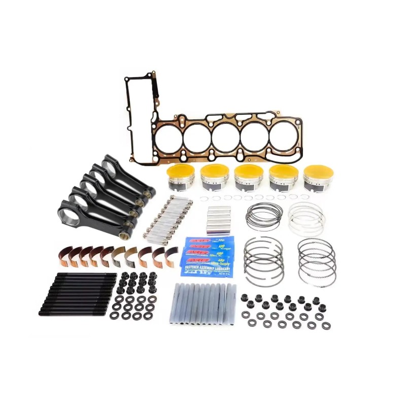 Questo kit è fatto per te se vuoi davvero aumentare le prestazioni. Il nostro kit ULTIMATE contiene tutto ciò che ti serve per rendere felici te e il tuo motore: fino a 1000 CV con il tuo motore 5 cilindri Evo! Perfettamente messo a punto: Kit ULTIMATE 2.5L TFSI per una potenza fino a 1000 CV per la tua DAZA e DNW. Ogni volta che pensi di non poter andare oltre, pensa a questo kit. Perché qui ci siamo superati ancora una volta. Il kit ULTIMATE non si chiama così per niente! Ti offre tutto ciò di cui hai bisogno per ottenere le migliori prestazioni dal tuo 5 cilindri: una combinazione perfettamente abbinata di pistoni forgiati, bielle, bulloni di biella, cuscinetti di biella, guarnizione della testata e prigioniero. Solo esteticamente, questo set può fare tutto: le nostre bielle in acciaio con albero a H BAR-TEK sono rivettate in titanio, il che conferisce loro una lucentezza dorata. I pistoni ad alte prestazioni abbinati di JE Pistons sono disponibili nella serie Ultra. Anche tutti gli altri componenti sono di altissima qualità: bulloni di biella ARP, cuscinetti di biella ACL, guarnizione della testata MLS Cometic e prigionieri ARP per la testata. Questo è davvero tutto ciò di cui hai bisogno. Non solo questi componenti si armonizzano perfettamente tra loro, ma risparmi anche denaro come set rispetto all'acquisto individuale! Kit estremo per prestazioni estreme Naturalmente, il nostro kit non è solo accattivante, ma è anche progettato per prestazioni estreme. Il tuo 2.5L TFSI sarà in grado di erogare fino a 1000 CV senza preoccupazioni! Questo perché nel nostro Ultimate Kit inseriamo solo i migliori componenti e sono abbinati in modo ottimale tra loro. I pistoni JE Pistons in questo kit sono rivestiti in modo speciale per prestazioni estreme e sono dotati di spinotti High Boost. Allo stesso tempo, sono ancora piuttosto leggeri. Questa combinazione è ovviamente perfetta per il motorsport. Il pistone viene fornito con tutto il necessario per l'installazione: spinotti, fasce e clip. Le nostre bielle in acciaio con speciale nitrurazione al titanio sono estremamente leggere e allo stesso tempo molto stabili. Grazie alla loro superficie, possono sopportare senza problemi carichi di pressione elevati. Sono fresate dal pieno e presentano un foro aggiuntivo per una migliore lubrificazione dello spinotto del pistone (foratura a fucile). Sono inoltre dotate di tutto il necessario per il montaggio: i bulloni di espansione ARP2000 e la pasta di montaggio. Questi due componenti sono i pezzi forti del kit e sono completati da bulloni ad alte prestazioni, cuscinetti da corsa e altro ancora. Come ho detto, di più non è semplicemente possibile! Caratteristiche del pistone ad alte prestazioni: Estremamente leggero grazie alla lega speciale Rinforzato per le massime prestazioni per alesaggio standard 82,50 mm e anche 82,55 mm se è richiesta una levigatura minima Spinotto del pistone da 22 mm Dimensioni di installazione e alesaggio allegate Caratteristiche delle bielle con albero a H trattate con nitruro di titanio: Fresate dal pieno ad alta resistenza trattate con nitruro di titanio adatte per aumenti di potenza estremi di 1000 CV Estremamente leggere e molto stabili Ispezionate Magnaflux 5 pezzi per set Dimensioni: 144 x 22 mm Peso per biella con viti solo ca. 600 grammi Con foro per il montante dell'olio per la lubrificazione dello spinotto del pistone (forato a fucile) angolato con precisione e testato internamente Con 10 bulloni di espansione ARP 2000 da 3/8" Caratteristiche dei cuscinetti di biella ACL: cuscinetti da corsa, foro extra rivestito ACL Race per lo spinotto del pistone Caratteristiche del prigioniero APR per il blocco e la testa: un MUST per tutti i motori che funzionano con una maggiore pressione di sovralimentazione! I perni più importanti del leader del mercato mondiale ARP. I prigionieri sono realizzati in acciaio al cromo-molibdeno 8740 e hanno filettature arrotondate. Fino al 40% più resistenti dei bulloni standard. Tutti i kit di prigionieri ad alte prestazioni ARP includono la pasta ARP. Viti ARP aggiuntive per i blocchi dei cuscinetti Caratteristiche della guarnizione della testata Cometic MLS Guarnizione della testata metallica multistrato Spessore standard per un rapporto di compressione ottimale di 9,5:1 Adatto a tutti i motori 2.5L TFSI EA855Evo come quelli installati su RS3 8V e TTRS 8S e molti altri. In ogni caso, noi Consigliamo di rinforzare la trasmissione delle valvole con le nostre molle e valvole Ferrea. Potete trovarle più avanti nella sezione accessori. Informazioni sul produttore: BAR-TEK BAR-TEK Motorsport GmbH Im Rauschen Auel 3, 51491 Overath-Brombach, Germania info@bar-tek.com 2.5 TFSI (EA855 evo) | DNWA | 400 hp (294 kW) 2.5 TFSI (EA855 evo) | DNWB | 390 HP (287 kW) 2.5 TFSI (EA855 evo) | CZGB | 367 hp (270 kW) 2.5 TFSI (EA855 evo) | DAZA | 400 hp (294 kW) 2.5 TFSI (EA855 evo) | DNWA | 400 hp (294 kW) 2.5 TFSI (EA855 evo) | DXHB | 400 hp (294 kW) 2.5 TFSI (EA855 evo) | DNWC | 400 hp (294 kW) 2.5 TFSI (EA855 evo) | DNWD | 407 PS (299 kW) 2.5 TFSI (EA855 evo) | DNWA | 400 hp (294 kW) 2.5 TFSI (EA855 evo) | CZGB | 367 hp (270 kW) 2.5 TFSI (EA855 evo) | DAZA | 400 hp (294 kW) 2.5 TFSI (EA855 evo) | DNWC | 400 hp (294 kW) 2.5 TFSI (EA855 evo) | DNWA | 400 hp (294 kW)
