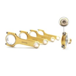 Il nostro ultimo sviluppo per il vostro motore TFSI. Bielle in acciaio ad alta resistenza con albero a H trattate con nitruro di titanio. Ci siamo presi la briga di sottoporre le bielle a nitruro di titanio durante la post-lavorazione. Il nitruro di titanio è un composto chimico dei due elementi titanio e azoto. È un materiale metallico duro dal tipico colore giallo dorato. Il materiale ceramico è caratterizzato da un'elevatissima durezza e resistenza alla corrosione. In questo modo otteniamo stabilità, rigidità e durata senza precedenti. Perfette per il tuning estremo, anche fino a 1000 CV e oltre. Il design delle bielle H-Beam garantisce la resistenza a carichi di pressione estremi. Hanno un'enorme rigidità e sono quindi molto stabili. Sebbene siano fresate dal pieno, sono anche molto leggere. Questo le rende perfette per il motorsport, dove ogni grammo conta. Grazie a un foro aggiuntivo (foratura a rigatura) attraverso il mantello, gli spinotti dei pistoni sono lubrificati in modo ottimale. Li misuriamo e li angolamo con precisione in modo che possiate essere assolutamente certi delle prestazioni e della sicurezza della biella. Se non hai ancora bulloni di biella e gusci di cuscinetti di biella, dovresti ordinarli contemporaneamente! Caratteristiche delle bielle H-Beam dorate: Nitrurate di titanio ad alta resistenza, fresate dal pieno, adatte per aumenti di potenza estremi di 1000 CV, estremamente leggere e molto stabili, testate Magnaflux, 5 pezzi per set Dimensioni: 144 x 21 mm, peso per biella con viti solo circa 600 grammi, con foro per il passaggio dell'olio per la lubrificazione dello spinotto del pistone (Rifle Drilled), angolato con precisione e testato nella nostra azienda, con viti di espansione ARP 2000 da 3/8". La nostra biella si adatta ai seguenti motori con biella da 144 x 21 mm: Audi EA855. Con il pistone corrispondente anche nel motore EA855EVO. Informazioni sul produttore: BAR-TEK BAR-TEK Motorsport GmbH Im Rauschen Auel 3, 51491 Overath-Brombach, Germania info@bar-tek.com 2.5 TFSI (EA855) | CZGB | 367 hp (270 kW) 2.5 TFSI (EA855 evo) | DNWA | 400 hp (294 kW) 2.5 TFSI (EA855 evo) | DAZA | 400 hp (294 kW) 2.5 TFSI (EA855 evo) | DNWB | 390 HP (287 kW) 2.5 TFSI (EA855 evo) | CZGB | 367 hp (270 kW) 2.5 TFSI (EA855 evo) | DXHB | 400 hp (294 kW) 2.5 TFSI (EA855 evo) | DNWA | 400 hp (294 kW) 2.5 TFSI (EA855 evo) | DNWC | 400 hp (294 kW) 2.5 TFSI (EA855 evo) | DAZA | 400 hp (294 kW) 2.5 TFSI (EA855 evo) | DNWD | 407 PS (299 kW) 2.5 TFSI (EA855) | CZGA | 340 hp (250 kW) 2.5 TFSI (EA855) | CZGB | 367 hp (270 kW) 2.5 TFSI (EA855 evo) | DNWA | 400 hp (294 kW) 2.5 TFSI (EA855 evo) | DAZA | 400 hp (294 kW) 2.5 TFSI (EA855) | CEPB | 360 hp (265 kW) 2.5 TFSI (EA855 evo) | DNWB | 390 HP (287 kW) 2.5 TFSI (EA855 evo) | CZGB | 367 hp (270 kW) 2.5 TFSI (EA855 evo) | DNWA | 400 hp (294 kW) 2.5 TFSI (EA855 evo) | DAZA | 400 hp (294 kW) 2.5 TFSI (EA855 evo) | DNWC | 400 hp (294 kW)