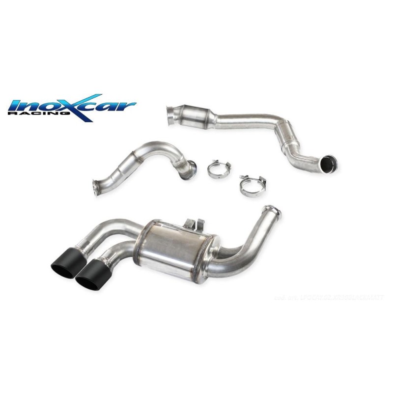 LPOCAY.02.XR90BLACKMATT Inoxcar Downpipe with 200 Cell sports metal catalyst* + Intermediate pipe + Rear with central exit 2 x diam. 90 X-RACE BLACK MATT (Possibility of other exit models on request) *The HJS sports catalyst is available on request, line price €2,890.00 plus VAT. PORSCHE CAYMAN (718 SERIES) S 2.5I TURBO (350CV) 2016 onwards