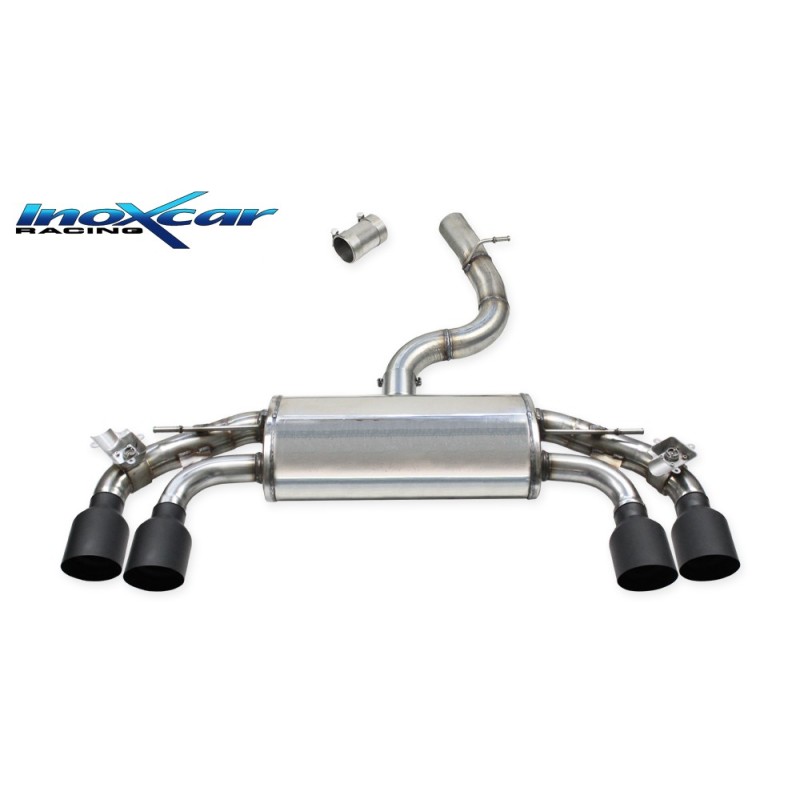 WGO.54.10CBLACK Inoxcar Rear with 2 x diam. outlet 100 BLACK CERAMIC R+L + Valves with standard electric motor assembly – (To be mounted in pairs with TCVW.04/TCVW.04S) – Wheelbase 655mm (from inside outlets) VOLKSWAGEN GOLF 7 2.0 R TSI (300CV) 2014 onwards