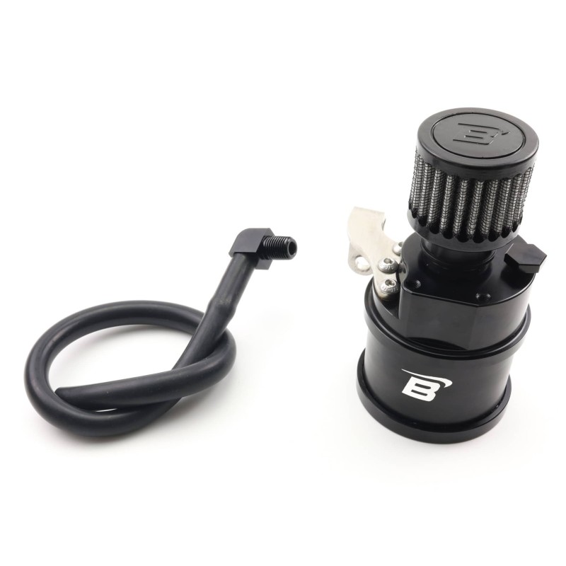 2.5L TFSI catchtank for Audi RS3 8V & TTRS 8S DQ500 BAR-TEK Our transmission oil catchtank for your 2.5 litre TFSI as in the Audi RS3 8V and TTRS puts an end to the oil in the entire engine compartment! The crankcase ventilation is made of plastic as standard. The transmission oil can expand here and the resulting oil vapours can escape. However, the oil splashes uncontrollably through the engine compartment as soon as the system is overloaded. Clogged crankcase ventilation and dirty and coked intake valves and throttle valves are also typical of the standard design. You will then notice a significant drop in performance, which is particularly annoying in tuned cars. This can no longer happen to you with our 2.5 litre TFSI catchtank! Optimised catchtank for the Audi RS3 8V & TTRS 8S DQ500 Our catchtank system for the transmission oil is easy to install in your RS3 or TTRS and is also quite compact and maintenance-free thanks to the return adapter. Thanks to its features, the additional tank ensures smooth engine running and the usual high performance. The Catch tank collects the fluids that escape from the gearbox. At the same time, the trapped gases are channelled out through a filter. However, it only allows the fluids to enter the can at a certain angle. This prevents the fluids from splashing through the filter. The gear oil then simply flows back again. Thanks to this drain, you don't have to constantly empty the oil collector catch tank. The result is cleaner combustion and increased knock resistance of the fuel-air mixture, and therefore smoother engine running overall. Features: Smoother engine running Protects against coking CNC-milled aluminium catchtank Black anodised finish with logo Cotton filter with logo Laser-cut bracket Easy to clean, prevents transmission fluid from escaping. Allows trapped gases to escape. Maintenance free The drain prevents the catchtank from having to be constantly emptied. Manufacturer Information about the manufacturer BAR-TEK BAR-TEK Motorsport GmbH Im Rauschen Auel 3, 51491 Overath-Brombach, Germany info@bar-tek.com