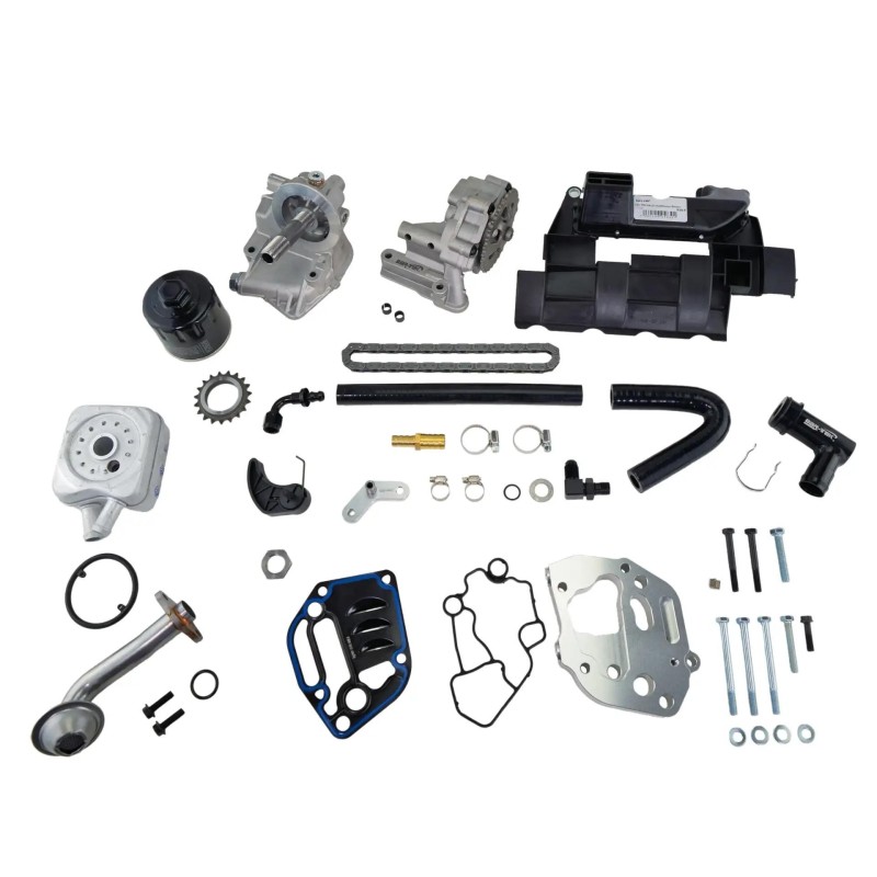 2.0L TFSI Kill-Kit for the vulnerable balance shafts in the oil pan. More engine power due to less moving masses (similar to a lightened flywheel) Therefore more engine power especially when accelerating More engine oil, therefore better oil supply More powerful oil pump Less oil foaming Easy installation of an oil cooler possible For all 4 cylinder 2.0L TFSI engines with timing belt drive (EA113 series). We recommend to install additionally our 1.8T oil cooler, the heat exchanger, our short oil filter and the connection kit for the heat exchanger. If both are fitted, then our special pressure pipe is also required. If you do not want to install these parts, the riser pipe on the oil filter holder must be shortened to fit . You need our special pressure pipe, because the original one touches the oil filter. See below under accessories! Attention: Oil pump must be drilled out to 9mm at one hole. Helicoil is used with special tools. (Tap Helicoil M8x1,25) Here we show you how to remove the oil pump module correctly: Manufacturer Information about the manufacturer BAR-TEK BAR-TEK Motorsport GmbH Im Rauschen Auel 3, 51491 Overath-Brombach, Germany info@bar-tek.com