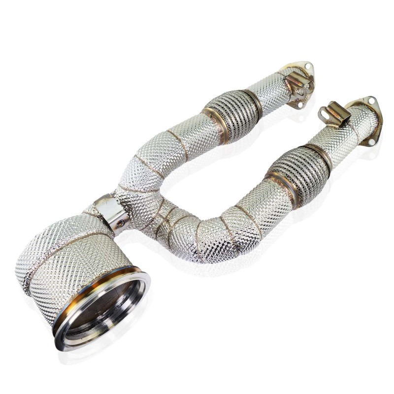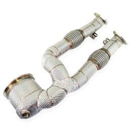 Large stainless steelDownpipe for 2.5L TFSI in Audi RS3 and TTRS. This high quality machined, large stainless steelDownpipe is 4" tall at the turbocharger outlet and then goes to a 3" connection to the 2.5" cat ports. The Downpipe mounts directly to the turbocharger outlet and routes the exhaust to the cat. The larger the diameter of the Downpipe, the better for engine power delivery. Exhaust back pressure is reduced and the life of the turbocharger is positively affected. The main advantages: Largest possible pipe routing Omission of the pre-catalytic converter Interlock flex pipe Significant increase in power (up to 30 HP and 30 Nm!) Acceleration of the engine much faster Lower exhaust gas temperatures and exhaust gas back pressure Longer durability of the turbo and engine The Downpipe is suitable for the original Audi RS3 and TTRS exhaust system, or on suitable catalytic converter replacement pipes. (No approval, registration possibly by individual acceptance) Manufacturer Information about the manufacturer BAR-TEK BAR-TEK Motorsport GmbH Im Rauschen Auel 3, 51491 Overath-Brombach, Germany info@bar-tek.com