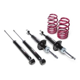 The shock absorber characteristics and spring rate have been mutually optimized in road tests. Depending on the setting and lowering, high-quality gas pressure shock absorbers or sports shock absorbers in the gas low-pressure system of a single- or twin-tube design are used. The instantly responsive shock absorbers are 10-15% firmer than the standard suspension, ensuring superior handling for your vehicle. Depending on the model, the damping can be adjusted during installation or removal.